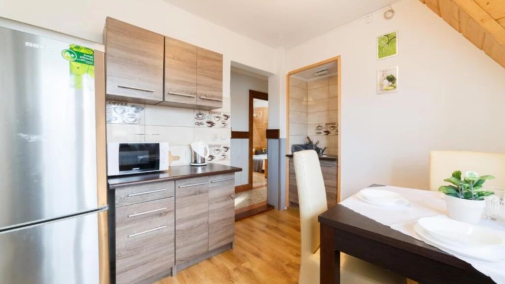 aneks kuchenny (czajnik elektryczny, kuchenka mikrofalowa, lodówka, oraz zastawa stołowa i sztućce), narciarnia z suszarnią,
